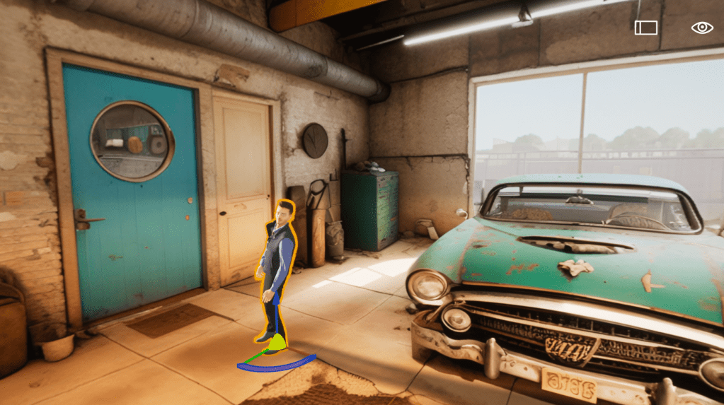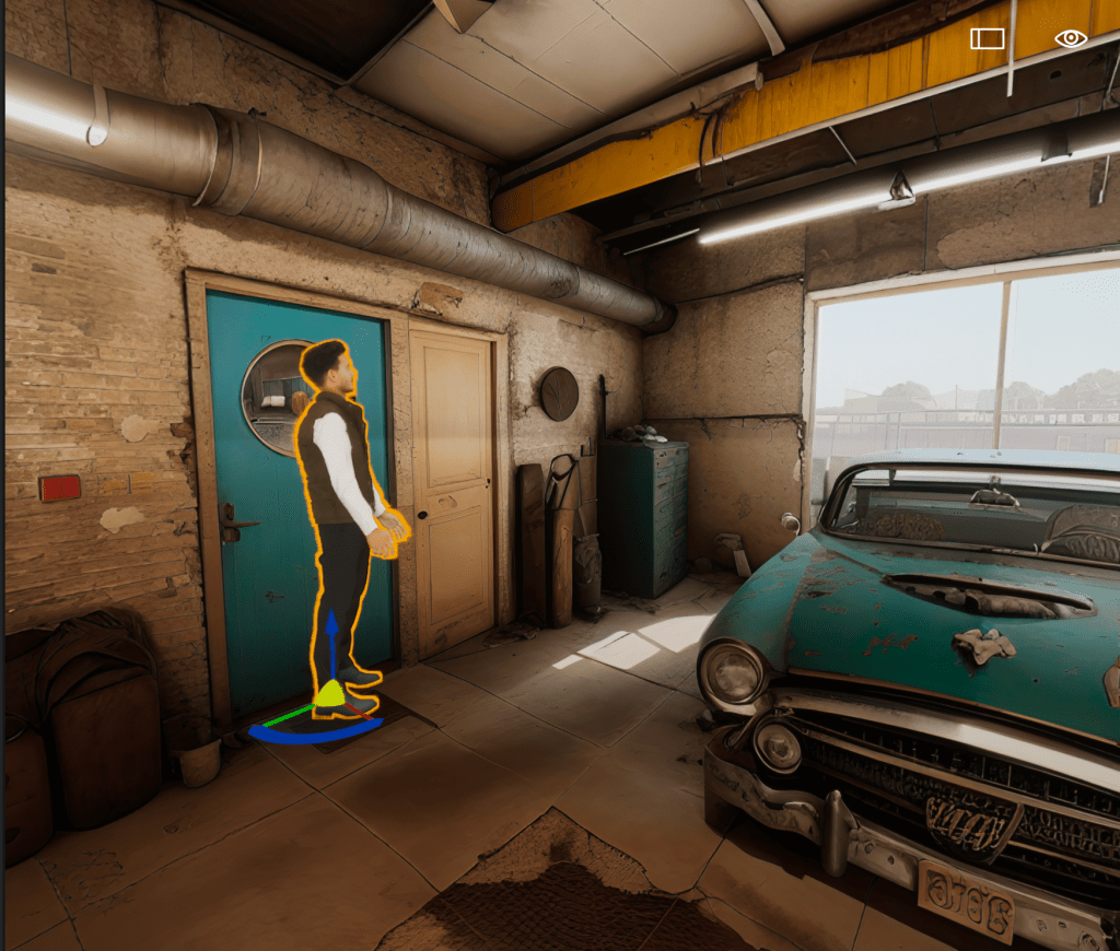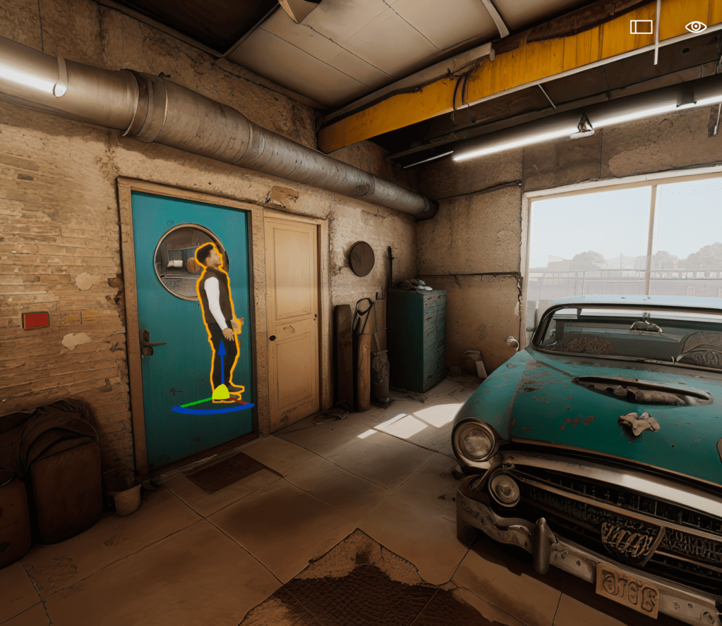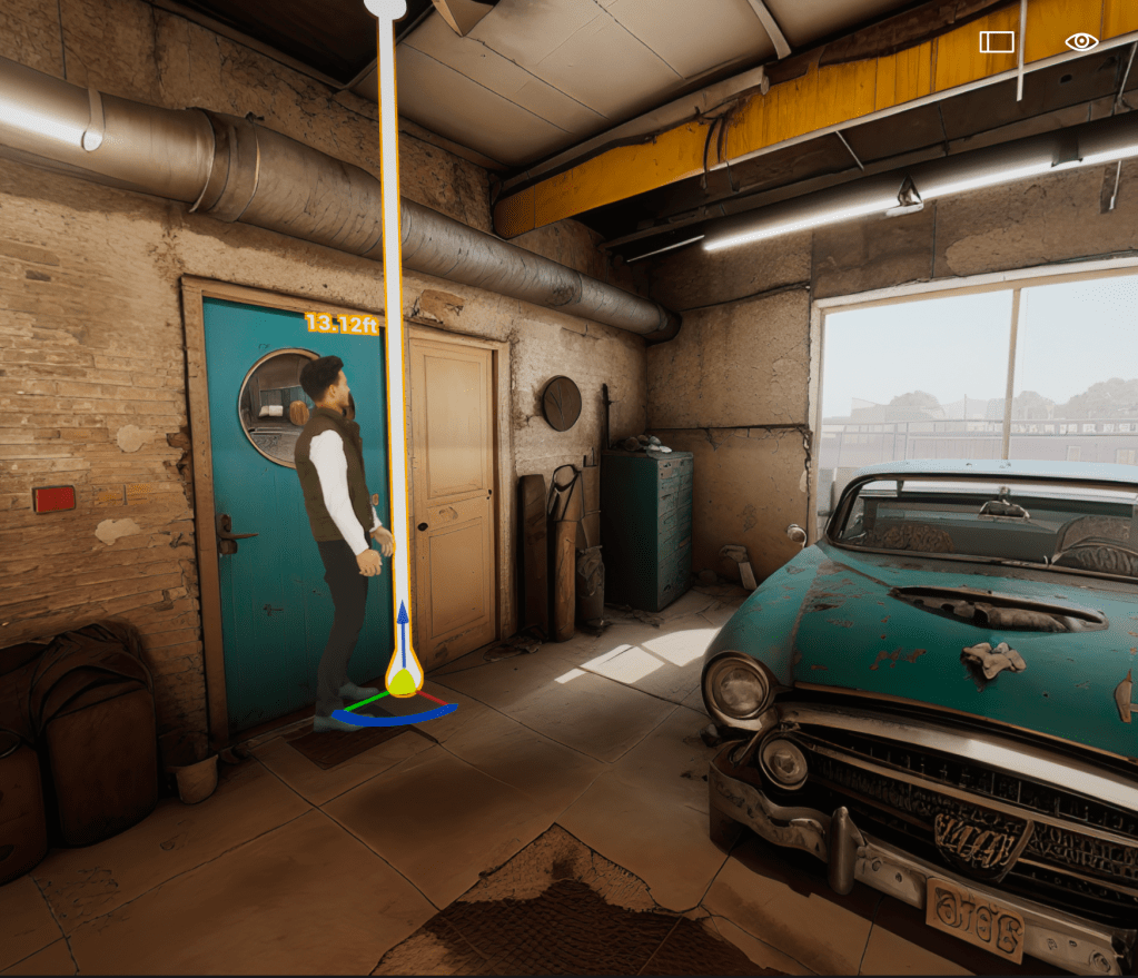 If you are familiar with 3D product you already know how to use gizmos but, the blue arrow moves the character in the Z direction or up and down. The Red line when selected moves the character left to right or X, and the Green line when selected moves the character back and forth or in the Y direction. The Orange area between the Red and Green lines constrains the movement to X and Y only. The Yellow ball is special because it always “re-Grounds” your character to the ground or to other 3D objects, it’s awesome for placing objects.