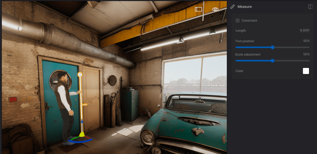 16. This should be the last step. Go to your Library on the Left side of your screen and select Tools, Then find the Measure tool and drag it into your scene, place it next to your character. The Default measurement is 4 Meters or 13.12 feet. Go to the properties on the right, uncheck Constraint and set the value to 6’ the rough height of our character. If things look off then you will have to adjust your values, just know that very small tweaks can make big changes.