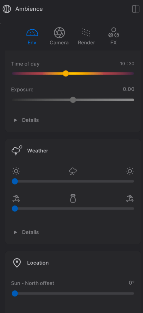I didn’t discuss lighting but you see the shadows of your 3D objects within the scene. You can rotate your skybox in the HDRI settings and this will rotate the HDRI sun. If you want to use the dynamic sky lighting then you can turn off the Lock sun to HDRI. There is another setting that can also affect the lighting with the dynamic sky called HDRI affects lighting. Hovering will also give a little help.