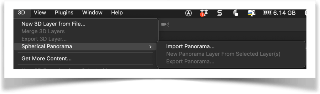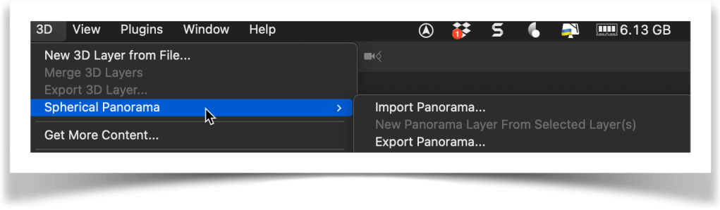 3. Select the Background layer and go to the menu. Select Spherical Panorama, then New Panorama Layer From Selected Layer(s).