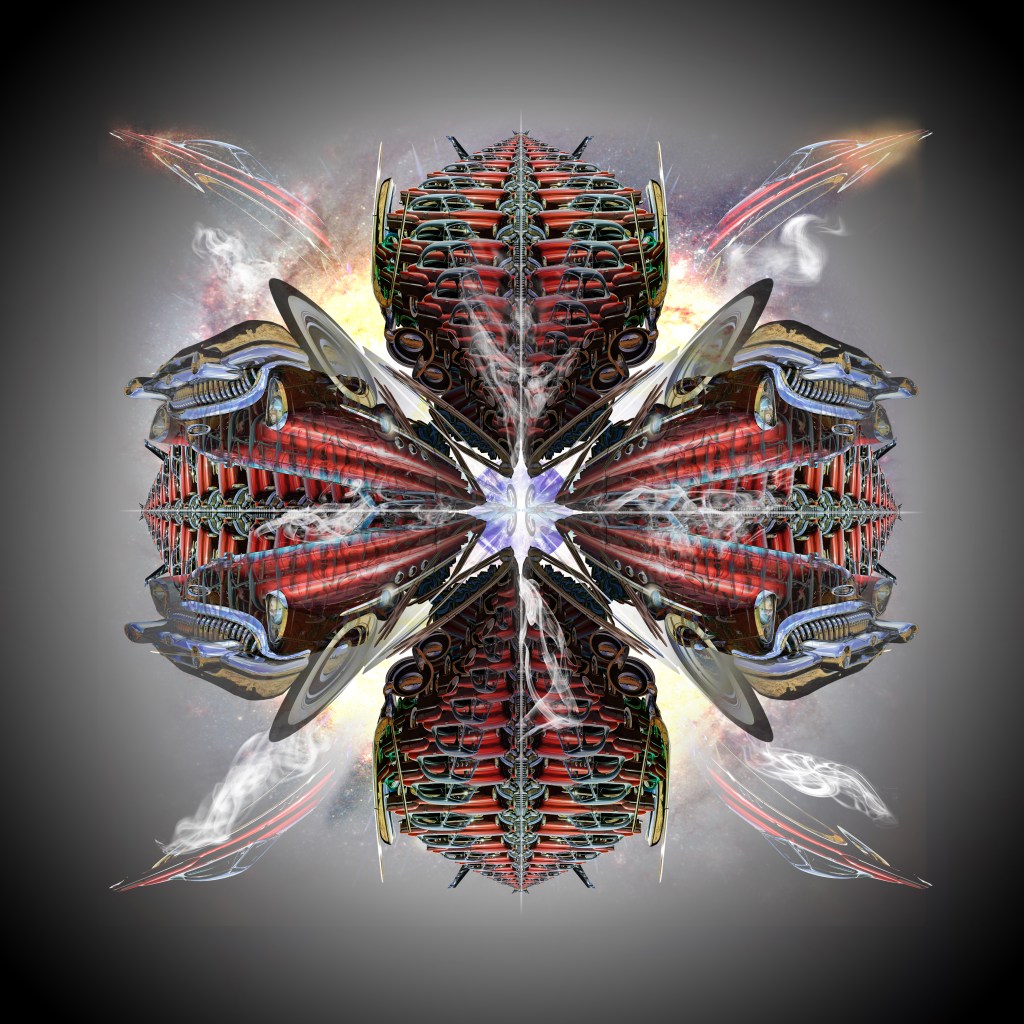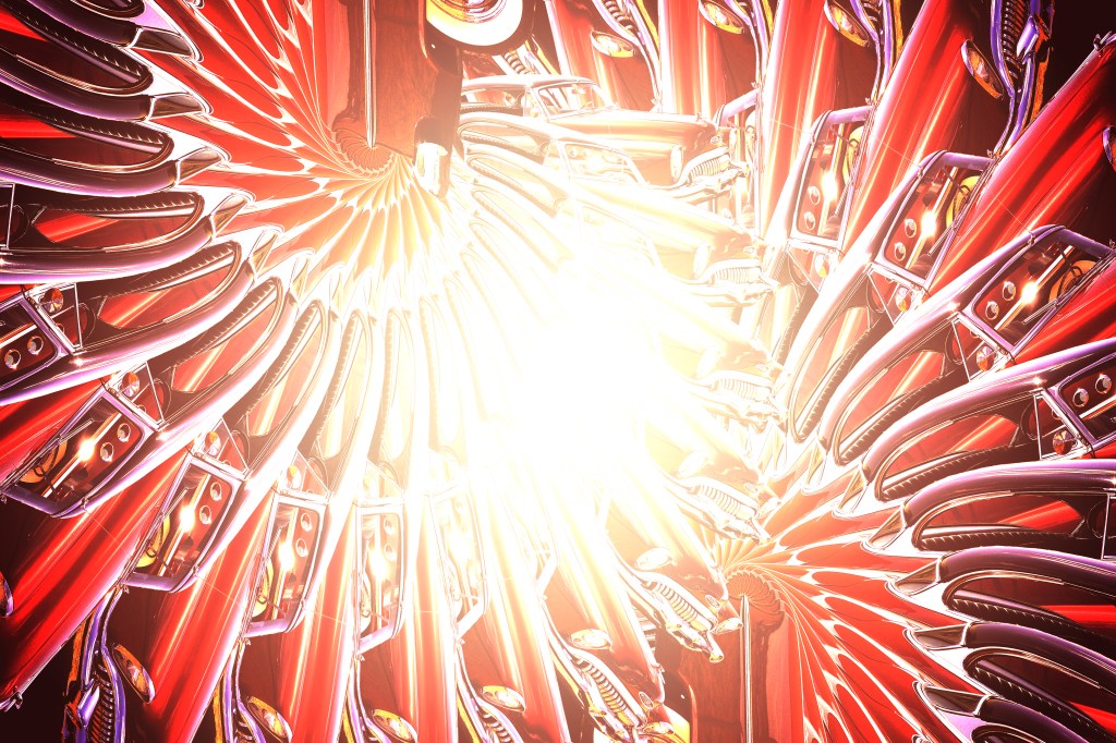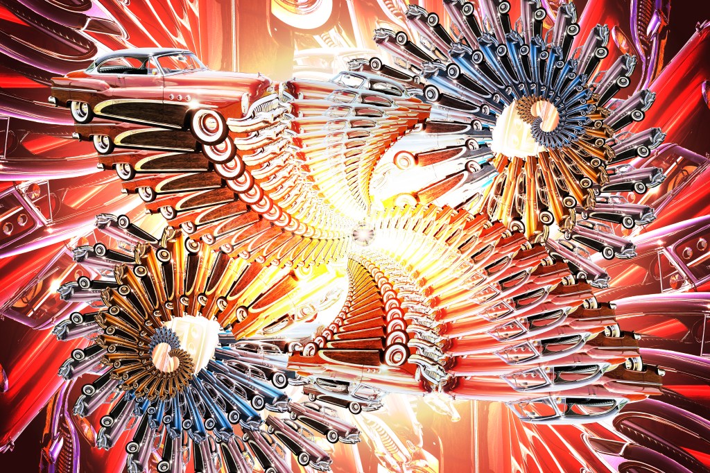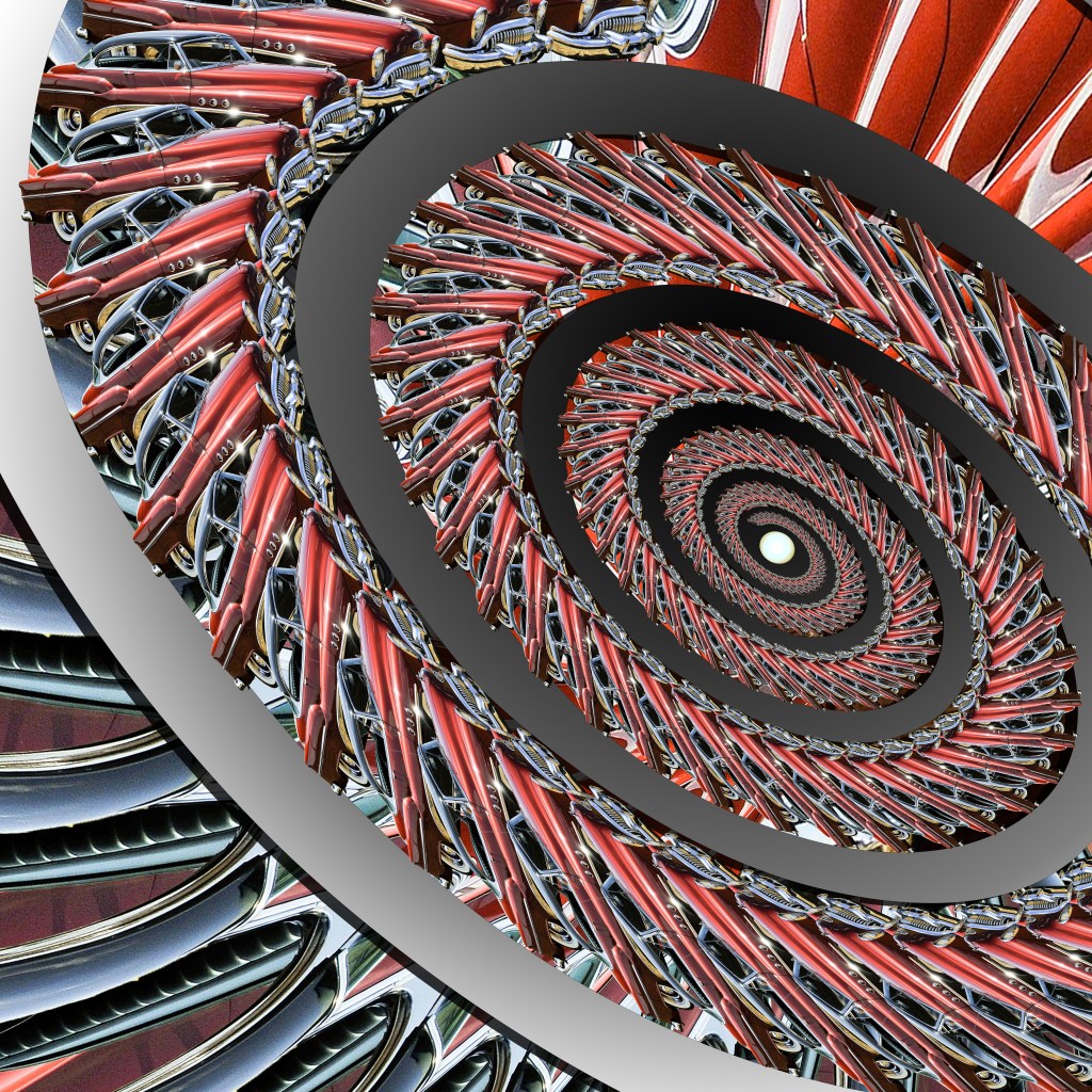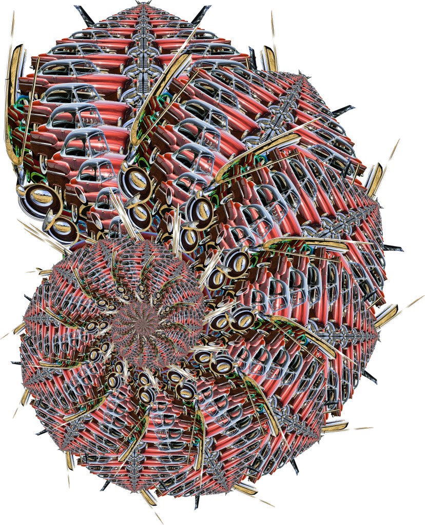 In this first installation of “One Object” art I chose this stock image from a car show, photographer unknown. I started by cutting out the car which I consider a group of objects. From this one object I created all the images you see below, no other images were used to create the images, just pieces and parts of the same object.